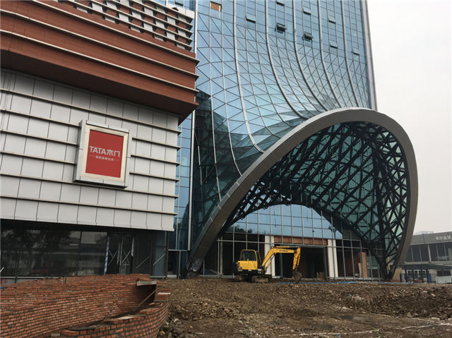 14#酒店:入口鋼構(gòu)雨篷安裝完成