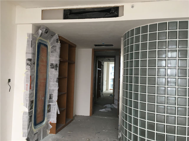 3、酒店:客房內(nèi)刮膩子完成,墻面裝飾基層施工完畢,衛(wèi)生間墻地磚、玻璃隔斷施工完畢。外立面幕墻、主入口雨篷施工全部完成。