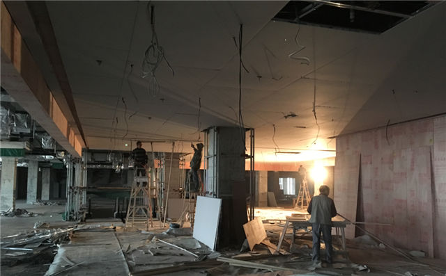 1、時尚百貨:一至五層公共區(qū)域吊頂?shù)蹴斣煨汀⒎獍逋瓿?,一至三層公共區(qū)域地磚粘貼完成,四、五層正在做地磚粘貼。商家裝修正在進行中。