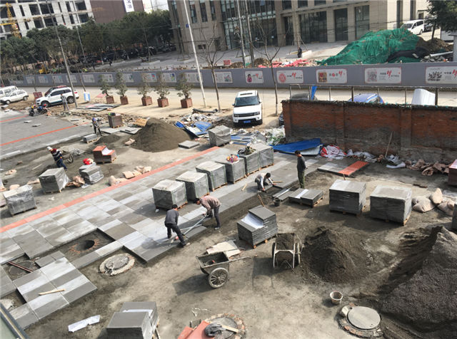 A、B區(qū)中間室外鋪裝施工