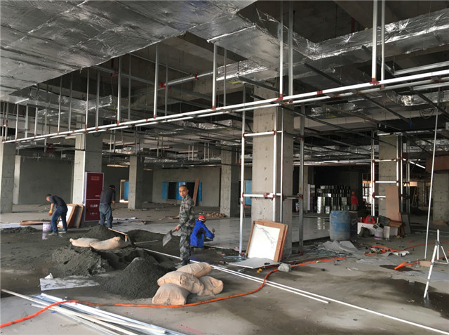 1、時尚百貨:一、二層公共區(qū)域吊頂正在安裝吊頂龍骨、做吊頂造型,三、四、五層公共區(qū)域吊頂封板完畢。二層商鋪內開始粘貼地磚,安裝頂面龍骨、做吊頂造型。