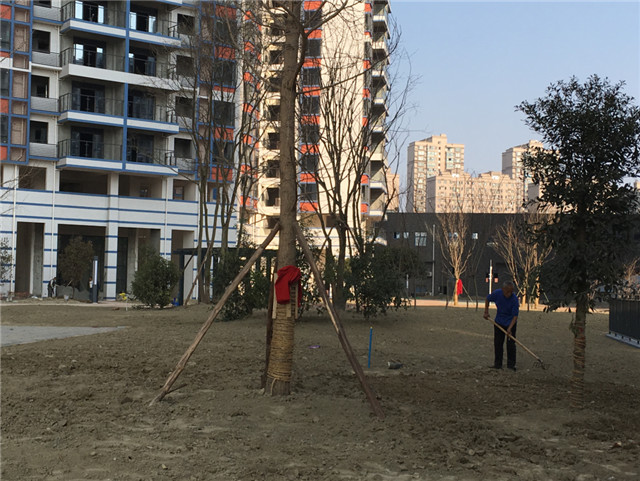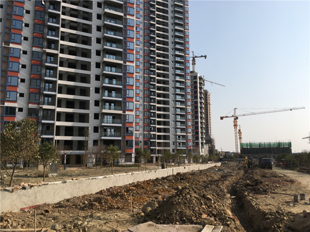 6、室外附屬:小區(qū)內人行道區(qū)域面層粘貼全部完成,喬木、灌木已種植,綠地整形完成。小區(qū)外圍正在做面層鋪貼施工。