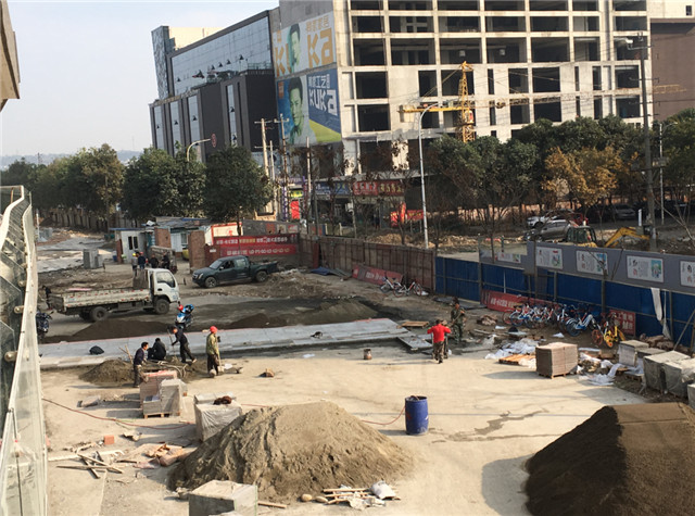 7、室外附屬:居然之家主入口室外附屬全部完成;時尚百貨及弘光路一側廣場大面積石材鋪貼完成,8#、9#樓一側室外鋪裝區(qū)域混凝土墊層已澆筑,正在做石材面層粘貼。居然之家四層屋面鋪裝及綠化施工完畢。A、B區(qū)中間市政道路正在進行開挖、埋管施工中。