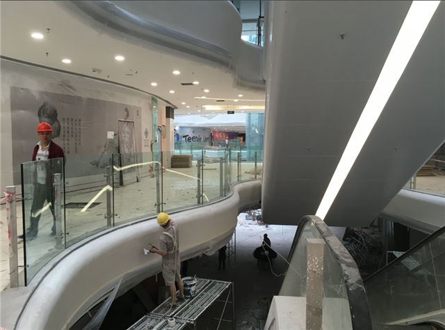 12#時(shí)尚百貨:公共區(qū)域玻璃護(hù)欄安裝