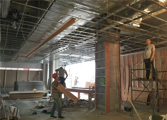 1、時(shí)尚百貨:一至五層公共區(qū)域吊頂、地面裝修施工完成,正在進(jìn)行收邊清理,各商家正在裝修中。