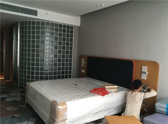 3、酒店:各樓層客房內(nèi)天棚、墻紙、木門、隔斷、衣柜,鏡面、地毯、衛(wèi)生潔具、洗浴配件、床、家具已全部安裝完成,正在進行清理打掃。外立面幕墻、主入口雨篷施工完成。