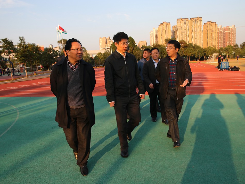 2015年11月25日,省教育工委書記、省教育廳廳長朱世宏一行蒞臨綿陽東辰國際學校視察素質(zhì)教育及信息化云課堂建設(shè)情況。綿陽市政府副市長謝曉東,綿陽市政府副秘書長嚴俊,綿陽市教育和體育局局長吳明禹,涪城區(qū)教育和體育局局長古奇等領(lǐng)導陪同視察。