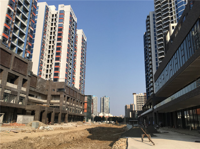 7、室外附屬:居然之家主入口室外附屬全部完成;時尚百貨及弘光路一側廣場大面積石材鋪貼完成,8#、9#樓一側室外鋪裝區(qū)域混凝土墊層已澆筑,正在做石材面層粘貼。居然之家四層屋面鋪裝及綠化施工完畢。A、B區(qū)中間市政道路正在進行開挖、埋管施工中。