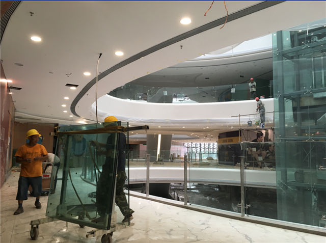 12#時(shí)尚百貨:公共區(qū)域玻璃護(hù)欄安裝